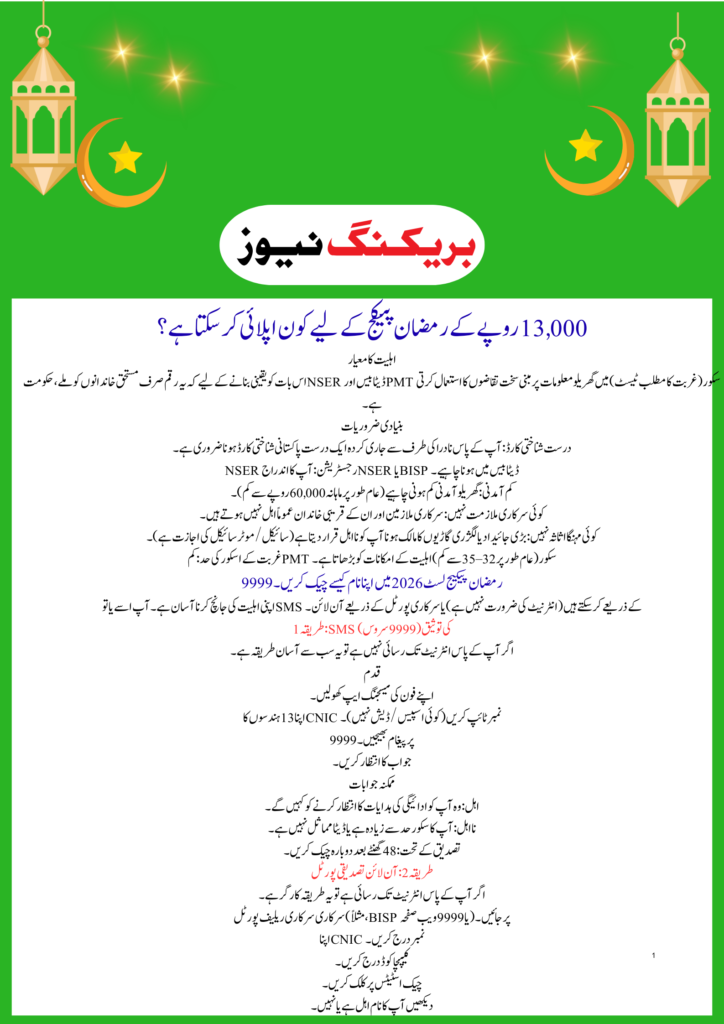 Urgent: 9999 PM Ramzan Package 2026 – Check Your Name Online for Rs 13,000 Cash Assistance