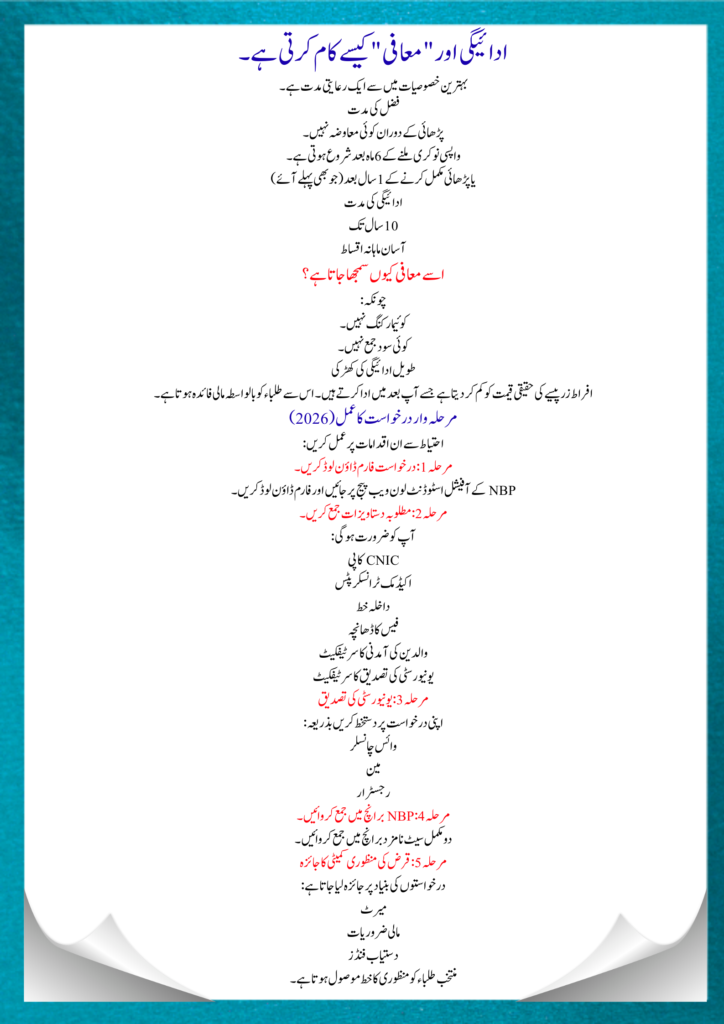 Education is the key to success. If you meet the eligibility criteria, do not delay. Collect your documents, verify your admission, and apply through National Bank of Pakistan.